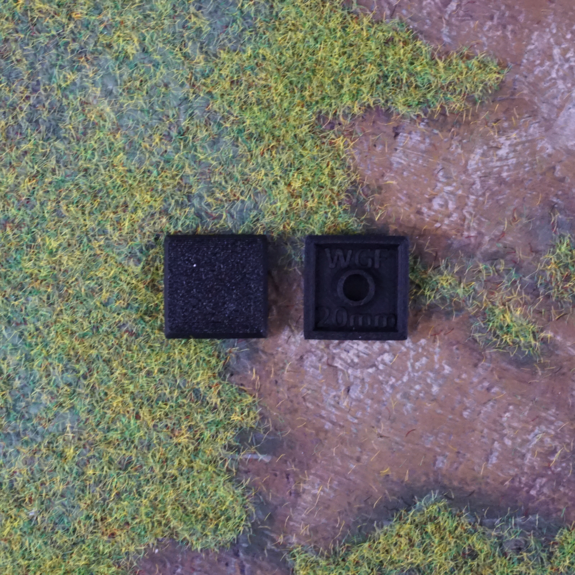 Blíster de 20 Peanas cuadrada para wargames de tamaño 20x20mm.