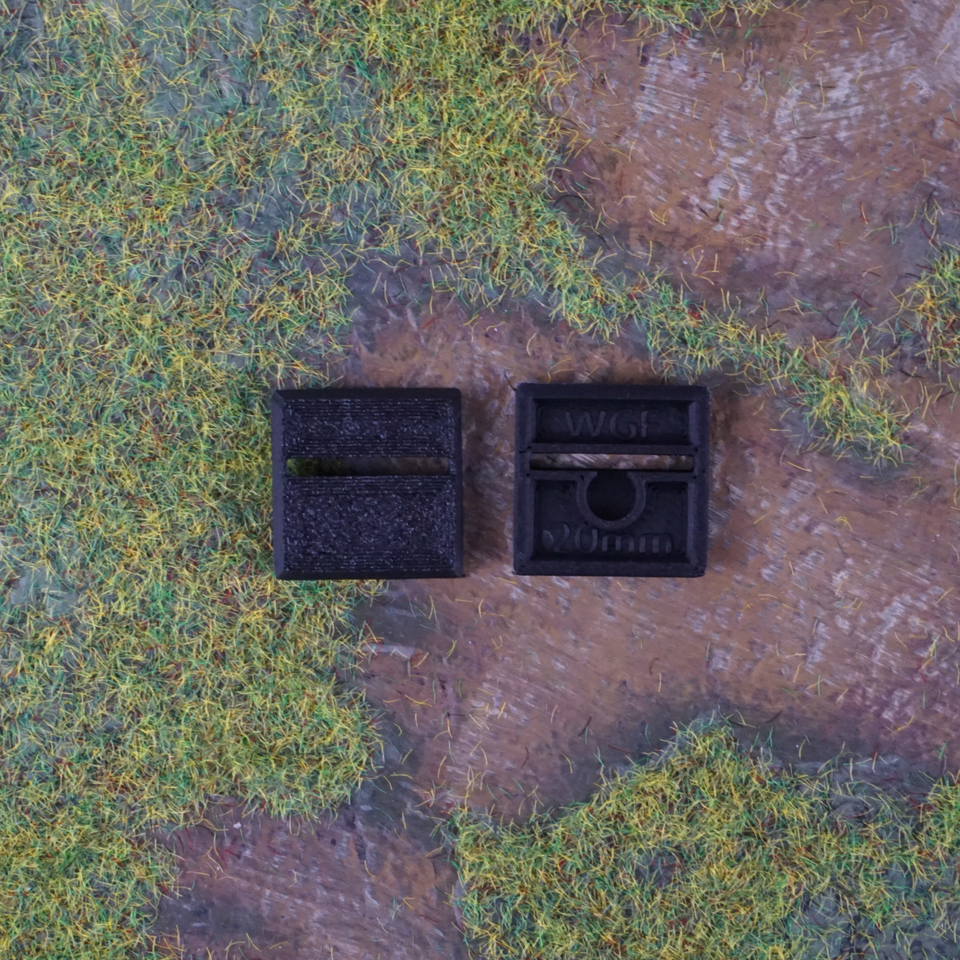 Blíster de 20 Peanas cuadrada con ranura diagonal para wargames de tamaño 20x20mm.